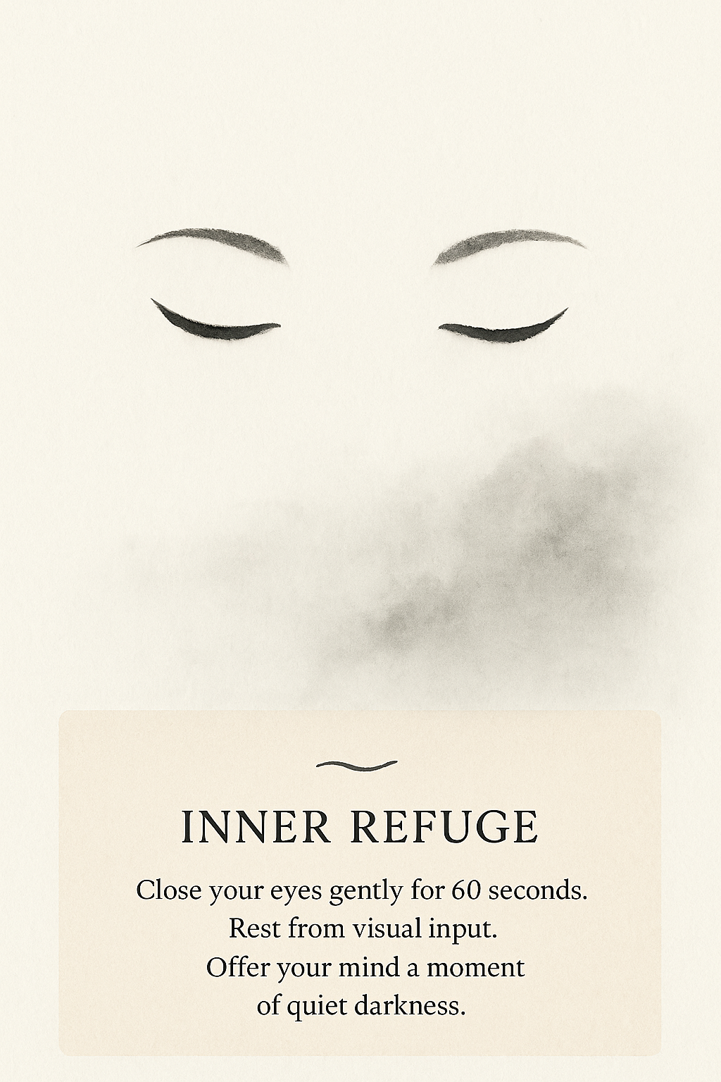 Visual stimuli constantly demand attention. Closing your eyes provides a mini-reset, calming the nervous system,reducing overwhelm, and allowing for a moment of internal clarity and focus.