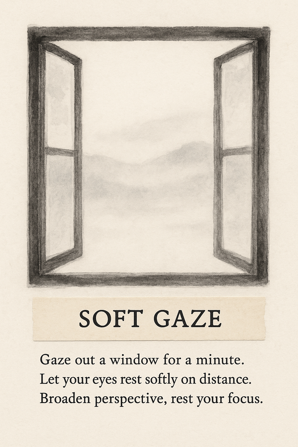 Gaze out a window for a minute, letting your eyes rest softly. Broaden your perspective.