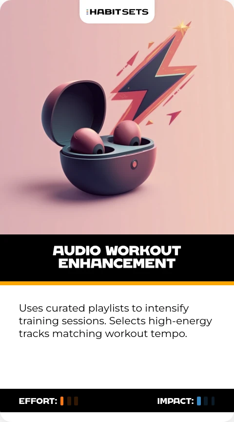 Uses curated playlists to intensify training sessions. Selects high-energy tracks matching workout tempo.