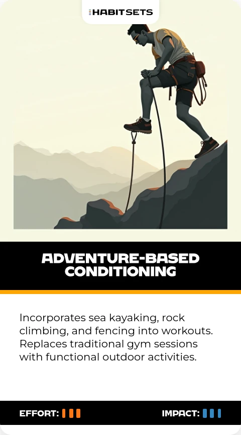Incorporates sea kayaking, rock climbing, and fencing into workouts. Replaces traditional gym sessions with functional outdoor activities.